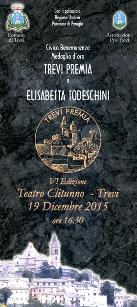 consegnerà la medaglia d'oro "Trevi Premia" ad ELISABETTA TODESCHINI
