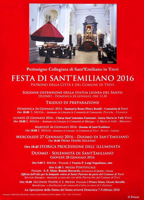 Patrono della Città e del Comune di Trevi DOMENICA 24 GENNAIO ore 12.30 -Solenne ostensione della statua lignea del Santo