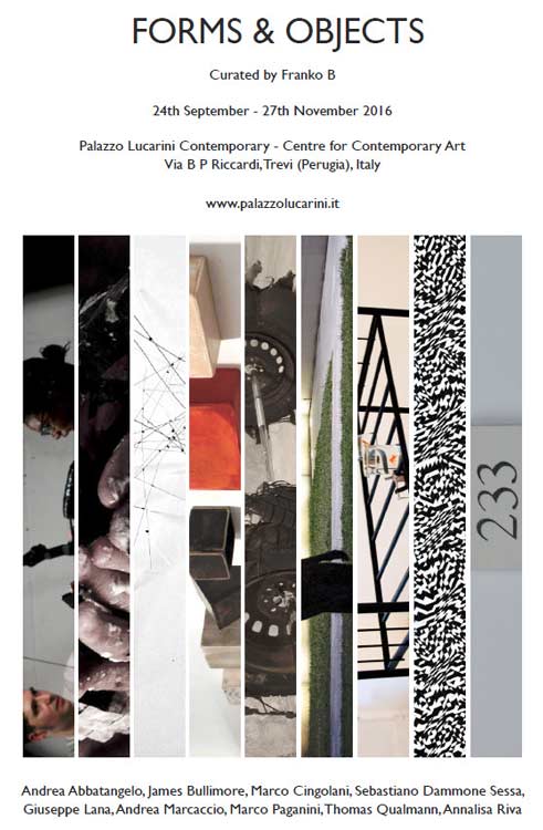All’interno della mostra, poi, Franko B svilupperà un progetto collaterale, Forms and Object: una mostra collettiva, da lui personalmente curata, dedicata ad alcuni artisti di varia provenienza.