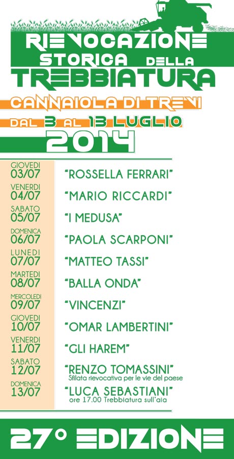 sfilata rievocativa che sotto forma di corteo storico in costume rappresenta tutte le attività e i lavori che caratterizzavano la mietitura e la trebbiatura di un tempo. Le scene vengono allestite su carri in movimento utilizzando anche carri dell'epoca scovati negli angoli più nascosti dì qualche casa contadina e rìsistemati con molta pazienza e dedizione. Si rappresentano tutti i personaggi e le scene di quel periodo, dai mietitori ai bambini che raccoglievano i mazzi di spighe, dalla carrata del grano trainata dalle vacche di razza chianina, alla trebbia che viene portata sull'aia per essere piazzata prima di iniziare la trebbiatura, dagli uomini impegnati nella trebbiatura al frate cercatore alle donne indaffarate in cucina a preparare il pranzo a base di strengozzi al sugo d'oca e oca arrosto,